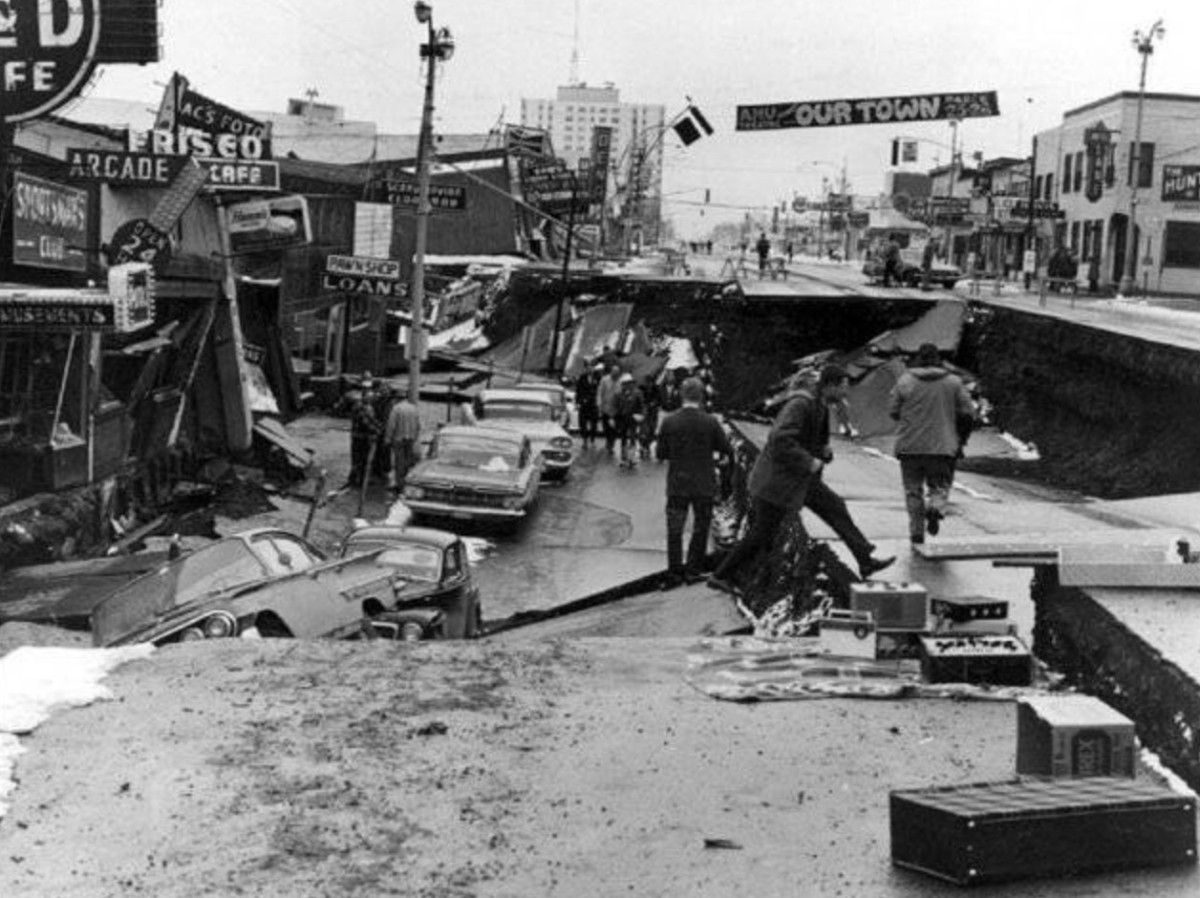 ABD tarihinin en büyük zelzelesi olarak bilinir. Good Friday (Kutsal Cuma) sarsıntısı olarak da anılır. Alaska’nın birçok kentinde büyük yıkıma yol açtı. Tsunami nedeniyle Kaliforniya ve Oregon kıyılarında de can kaybı yaşandı.
