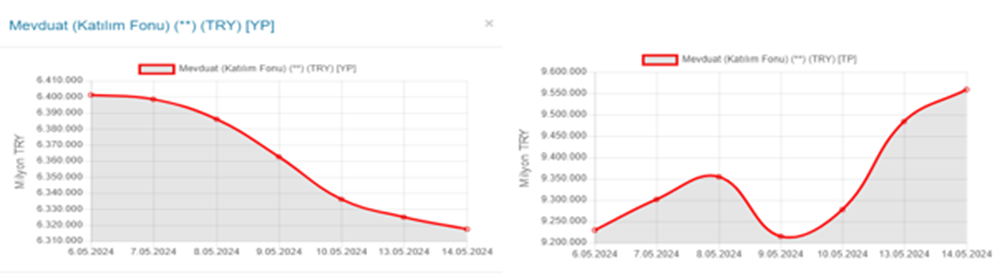 “Yerel seçimlerden sonra döviz kurlarında sabitleşme eğilimi oluşunca döviz bozdurma eğilimi hızlandı. Son haftalarda yabancı para mevduatındaki (soldaki grafik) ve Türk Lirası mevduatındaki (sağdaki grafik) eğilim şöyle (grafikler BDDK günlük bültenden alındı):