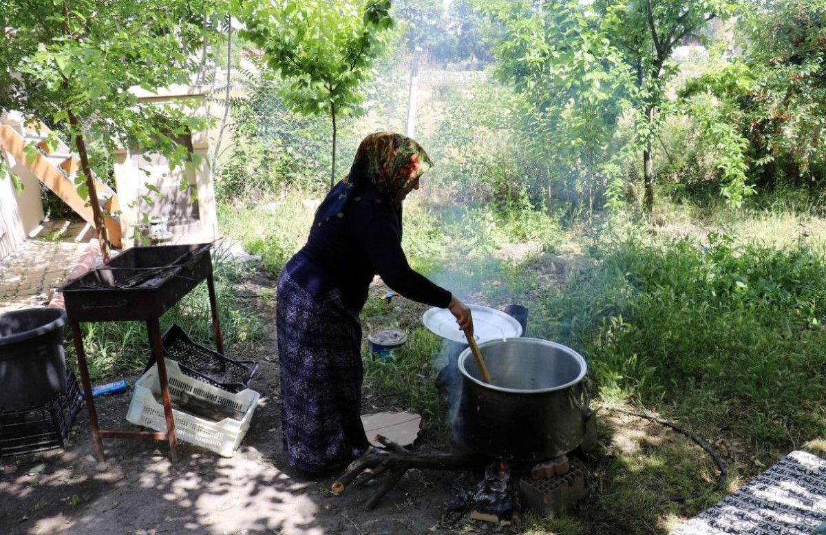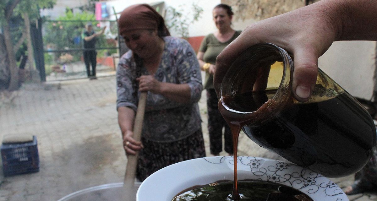 Uzun uğraşlar ile hiçbir katkı unsuru kullanılmadan hazırlanan pekmezin el mahareti gerektirdiğini anlatan Medine Turgut, “Uzun uğraş ve zahmetler sonucu el personelliği ile büsbütün doğal yollardan hiçbir katkı hususu kullanılmadan üretilen pekmezlerimiz kış mevsiminde her kedere deva olarak kullanılır. Dutlar kazanda kaynatılır, şırası elde edilir. Kaynatma süreci uzun mühlet uygulanır. Kaynatma süreci açık yayvan kaplarda yapılır ve düşük ısıda yoğunlaşıncaya kadar kaynatılır. Kaynatma kazanında şıra kaynamaya başlayınca oluşan köpükler kepçe ile alınır. Kaynama ilerledikçe şıranın üstü sarı köpük bağlar, şıra içten içe kızarır, göz göz olarak kaynar ve pekmez kokusunu yayar” diye konuştu.