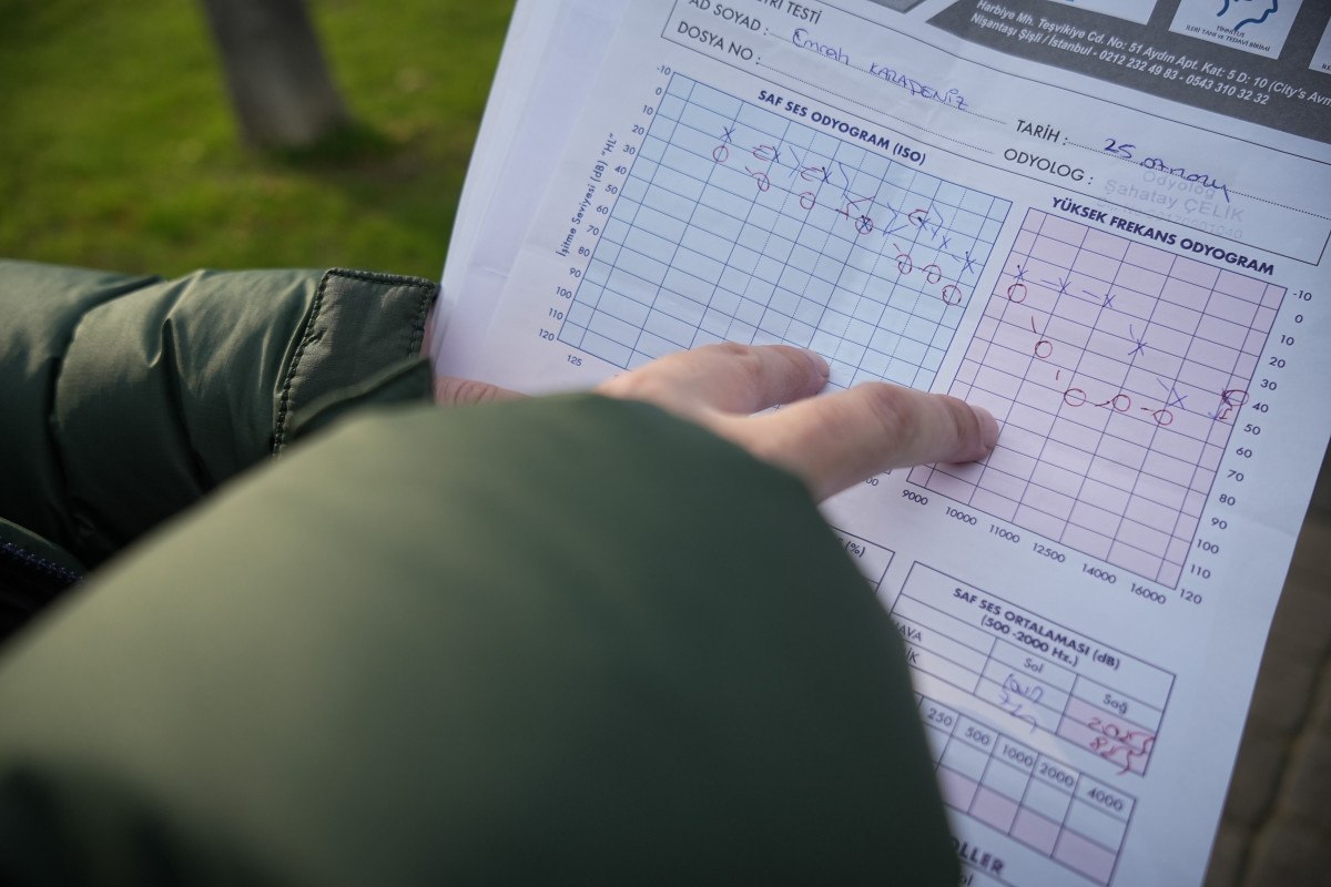 Esnaf ağzıyla ‘yavaş yavaş’ veririz diye geçiştirdi. Güvenlik ekipmanı olarak kulak tıkacı veriyorlarmış fakat bana verilmedi. Belki verilseydi ben bunları yaşamayacaktım. Ben işlem sırasında kulağımdan ses geldiğini duydum. Cihazı kullanan operatöre bunu bildirdiğimde ‘ilk kez girenler basınç hissedebilir’ yanıtını aldım. Öyle deyince işleme devam ettik.