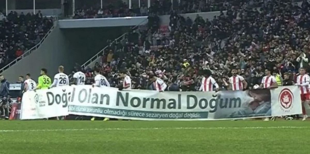 Sivasspor ile Fenerbahçe ortasındaki maç öncesinde mesken sahibi kadronun alana çıkarken taşıdığı “Doğal olan olağan doğum” yazılı pankart, toplumsal medyada büyük yankı uyandırmıştı.