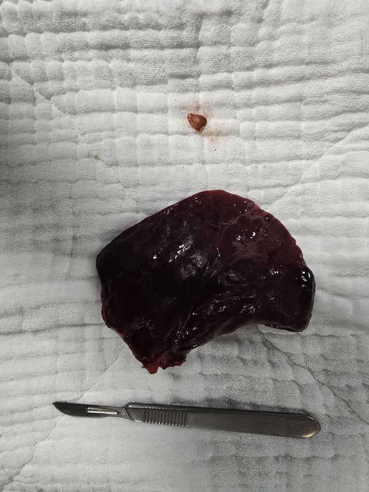 Çekirdeği çıkardık, temizledik ve bunun bir karayemiş çekirdeği olduğunu gördük. Bu çekirdek akciğerin orta lobunu tıkamış, balgam bu bölgede birikmiş ve zamanla iltihaplanarak akciğer dokusuna zarar vermiş.