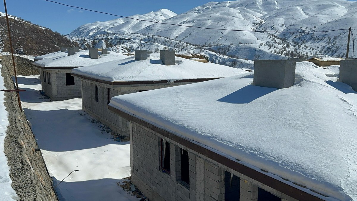 Köy evlerinin yapımı sürerken, geçtiğimiz hafta etkili olan yağışı köy evlerini beyaza bürüdü. Drone ile görüntülenen köy evleri görsel şölen sundu.