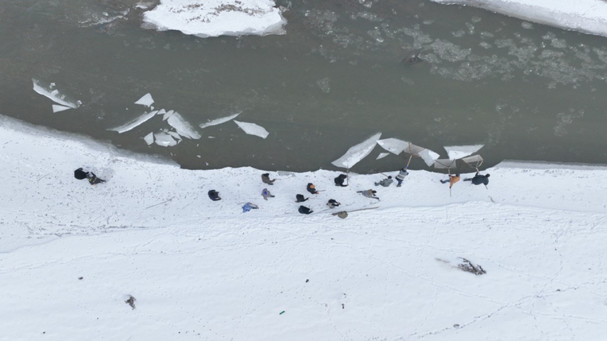 Ağrı’da buzlu nehirde sıra dışı balık avı