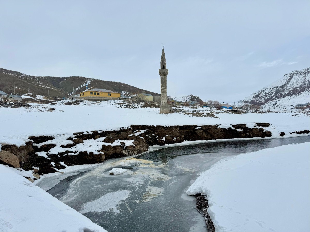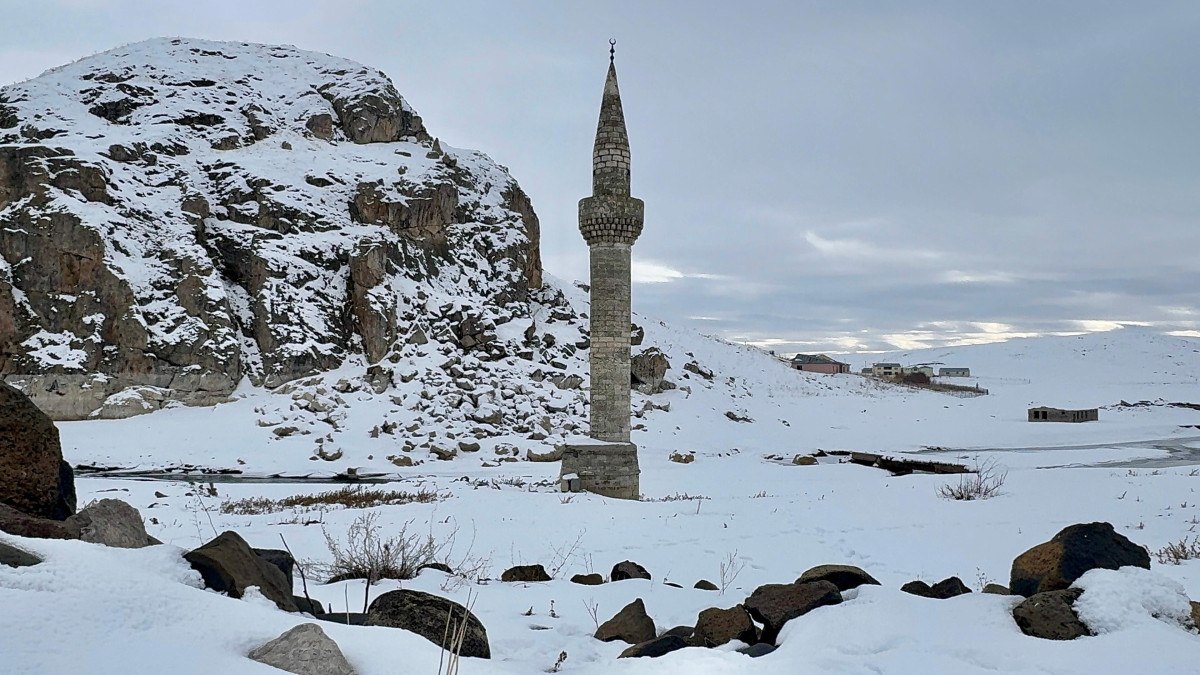 Yıkılmaması ve sunduğu eşsiz manzaranın bozulmaması adına köylülerin etrafını taş duvarlarla ördüğü minarenin kış mevsiminde sunduğu manzara dron ile görüntülendi.