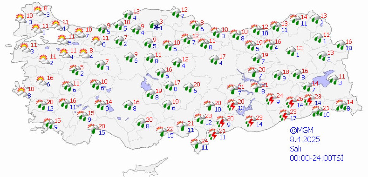 Valiliğin sosyal medya hesabından yapılan açıklamada, Meteoroloji Genel Müdürlüğüne göre Türkiye’nin 7 Nisan Pazartesi günü kuzeybatı (Trakya) kesimlerden itibaren yeni bir soğuk ve yağışlı havanın etkisi altına gireceğinin tahmin edildiği belirtildi.