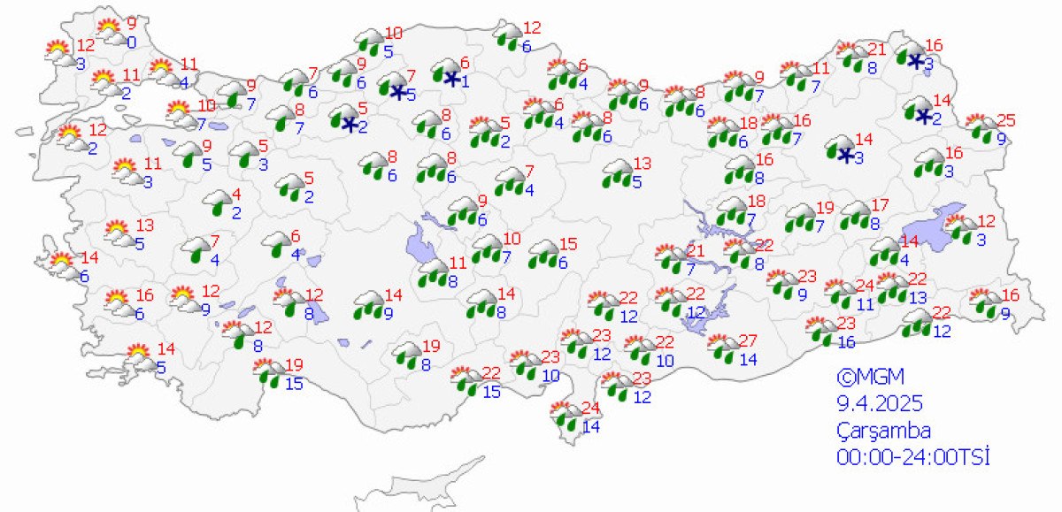 AKOM’DAN KARLA KARIŞIK SAĞANAK UYARISI