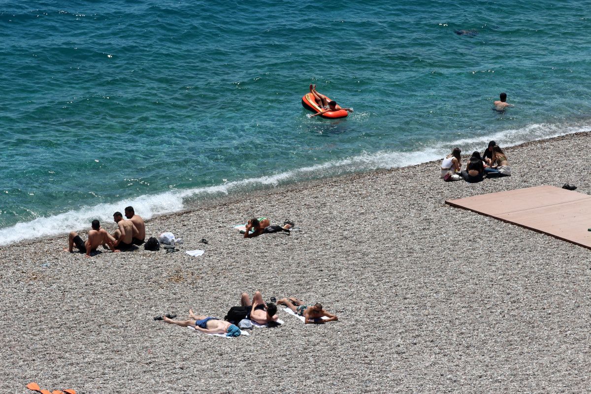 Sıcak havayı fırsat bilenler ve tatilciler, Konyaaltı Kıyısı’nı doldurdu.
