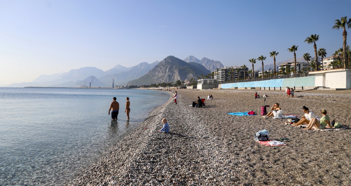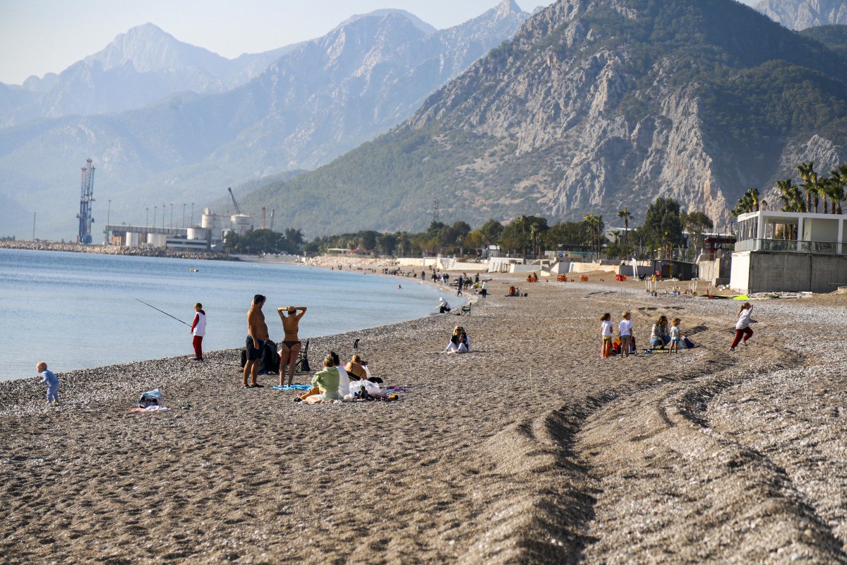 Sahilde güneşlenenlerin ve kitap okuyarak vakit geçirenlerin yoğun olduğu Konyaaltı’nda yerleşik yabancıların çoğunlukta olduğu dikkati çekti.