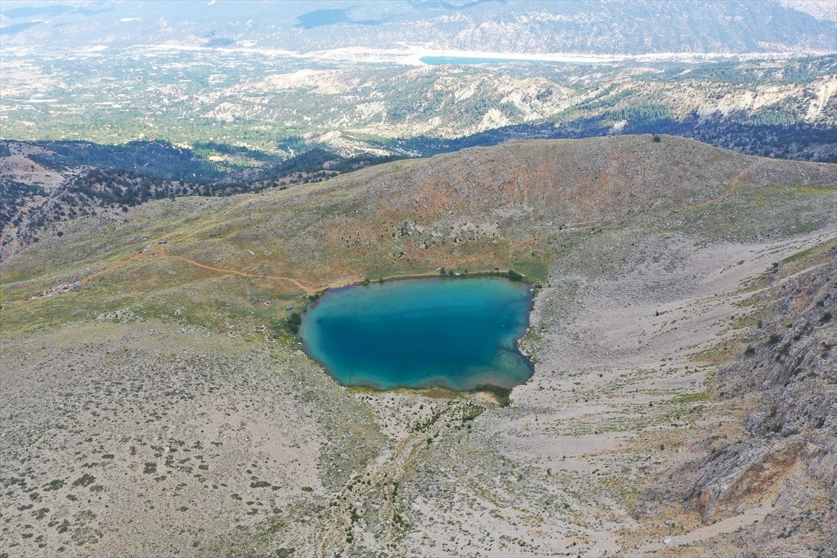 Antalya’nın Kaş ilçesinde bulunan ve kar sularından beslenen Yeşil Göl’ün su seviyesinde kuraklık nedeniyle düşüş yaşandı.