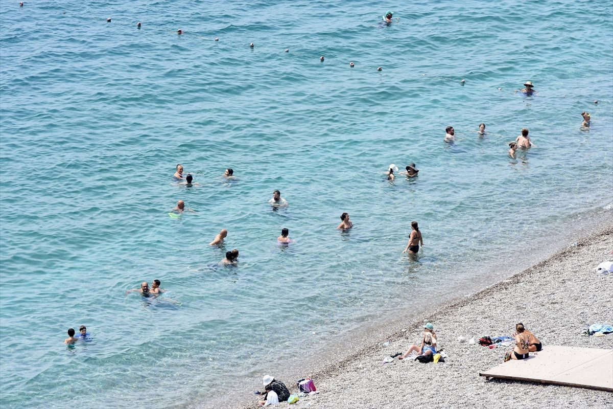 Sıcak hava ve yüksek nemden bunalan kent sakinleri ile turistler, Konyaaltı ve Lara kıyılarında denize girip serinlemeye çalıştı.