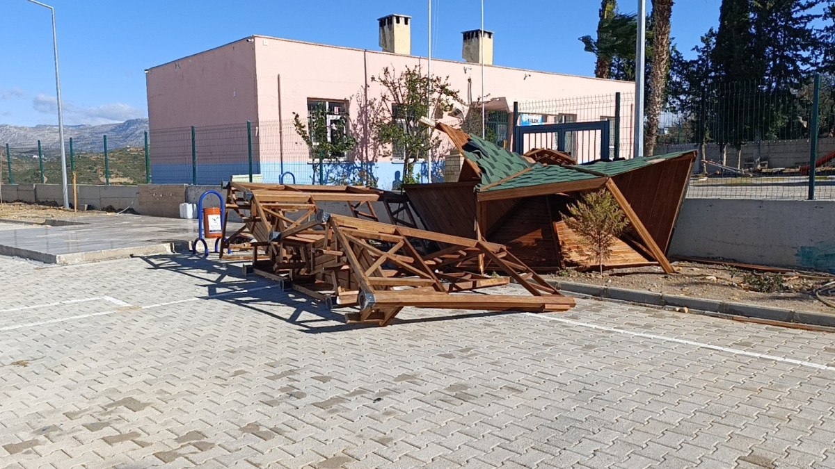 Şiddetli rüzgarın etkisiyle mahallede bulunan okul da zarar gördü.