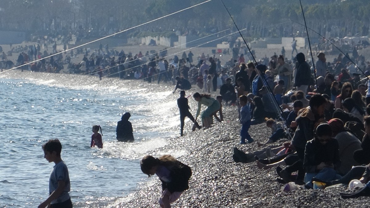 Yaz aylarını aratmayacak şekilde insan doluluğunun yaşandığı sahilde bazı vatandaşlar ise denize girdi.