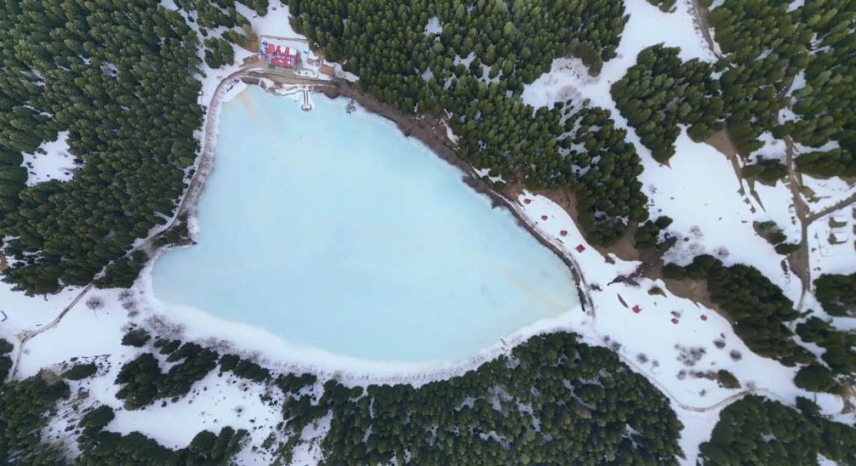 Kalp şeklini andıran görünümü, buz tutan göl beyaza bürünürken adeta masal diyarlarını andırıyor.
