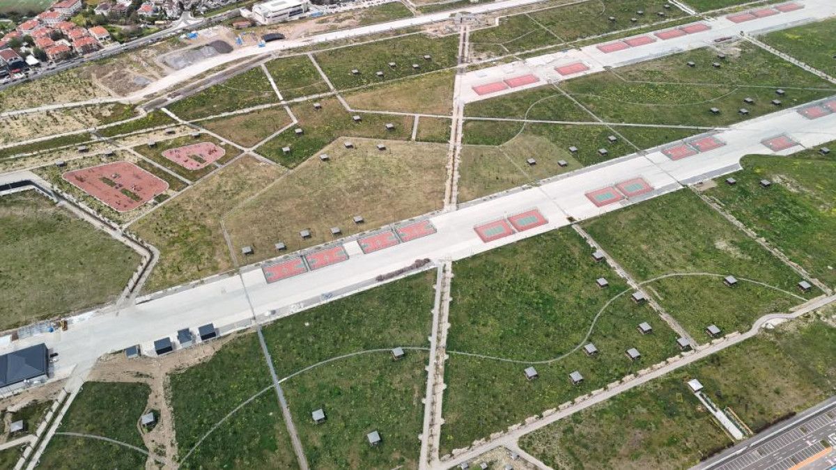 Ağaç ve peyzaj düzenlemeleri ile yeşile bürünen alan havadan görüntülendi. Pistlerin üzerinde ise onlarca tenis, basketbol oyun alanları bulunuyor.