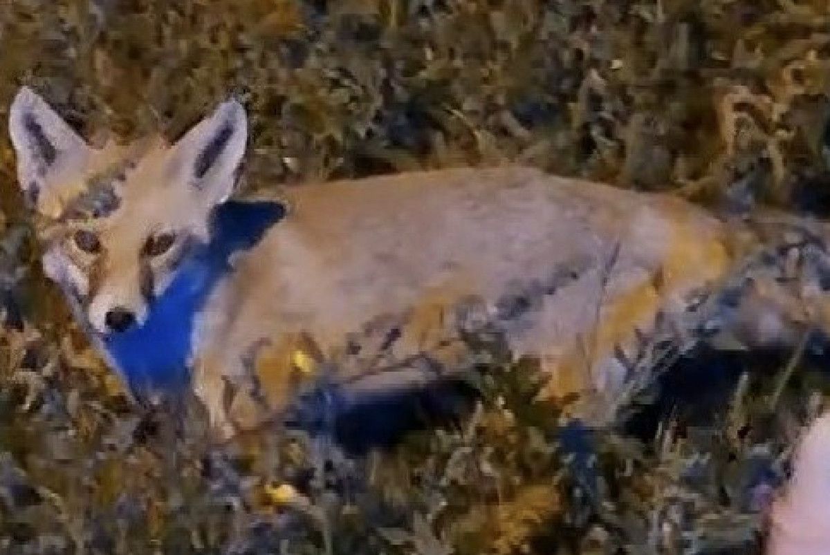 Aç tilki, verilen yemeği yedikten sonra koşarak gözden kayboldu, doğal hayat alanına geri döndü.