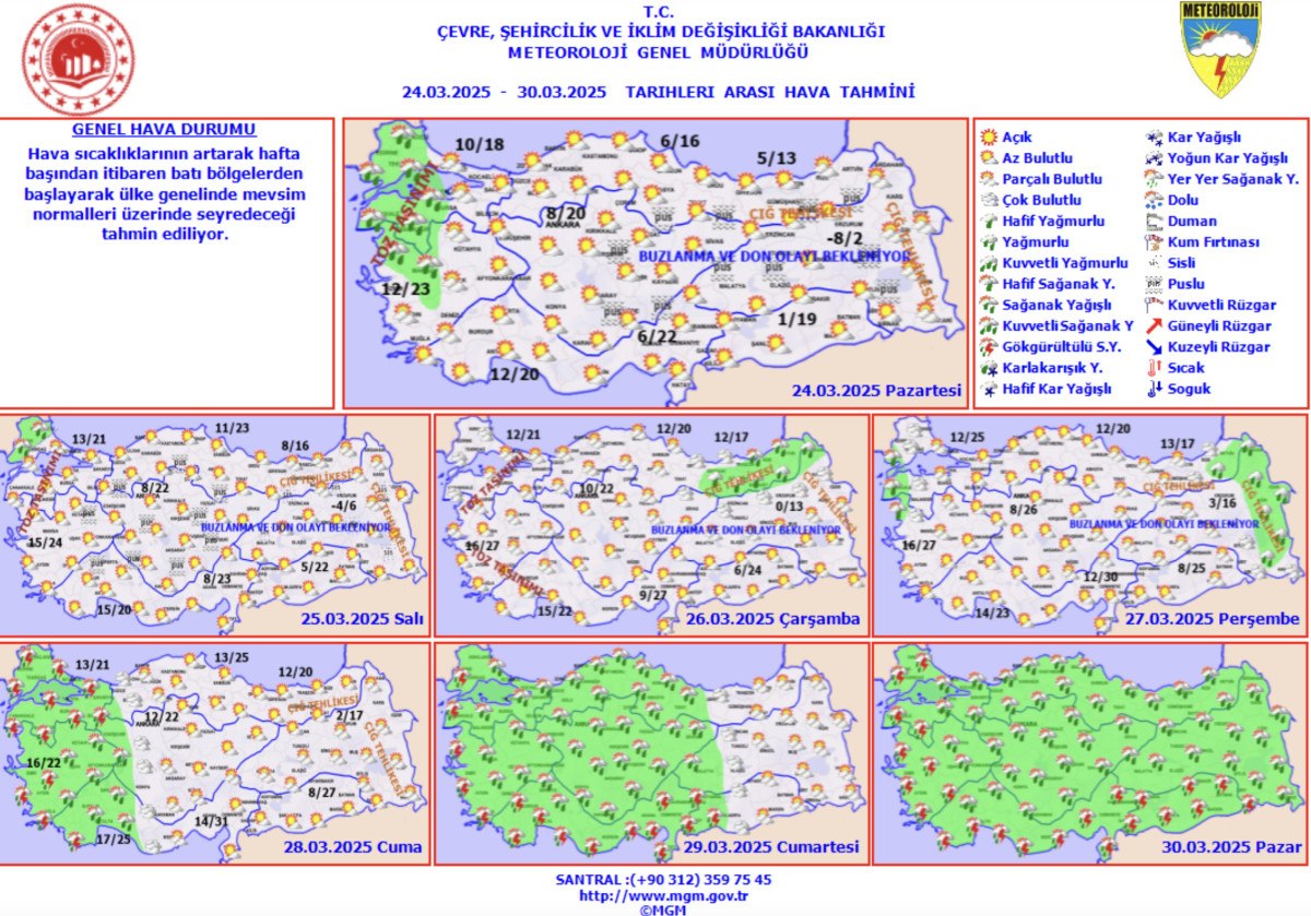 Meteoroloji’nin resmi internet sitesinde yer alan Mart ayının son haftasına ilişkin hava haritasında şu bilgilere yer verildi: