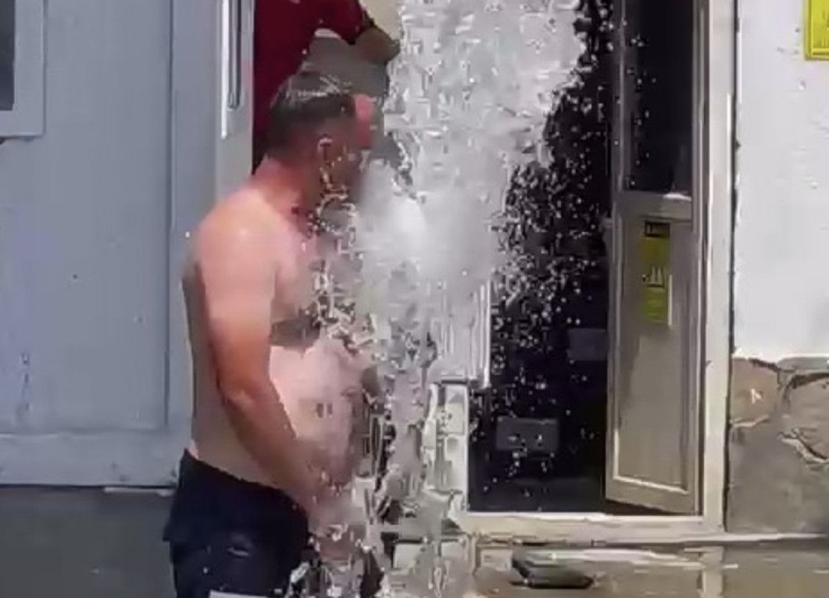 Kentte faaliyet gösteren bir beton santralinde vazife yapan ve gün uzunluğu açık alanda çalışmak zorunda kalan transmikser sürücüleri ve beton pompa operatörleri, kavurucu sıcaklıkla baş edebilmek için hortumla su tutarak serinlemeye çalıştı.