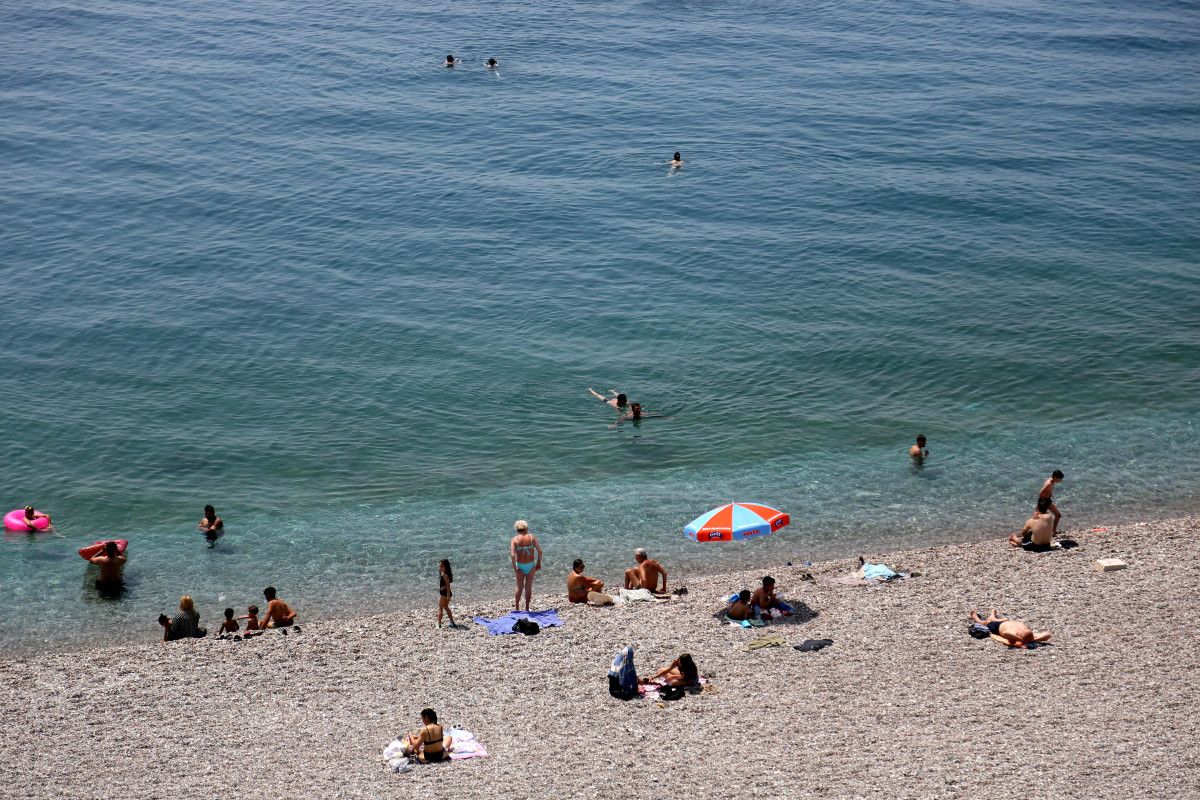 Tatilcilerin yanı sıra, kurban kesen Antalyalılar da öğlenden sonra soluğu kıyıda aldı. Kıyıdaki yoğunluk varyant seyir terasından görüntülendi.