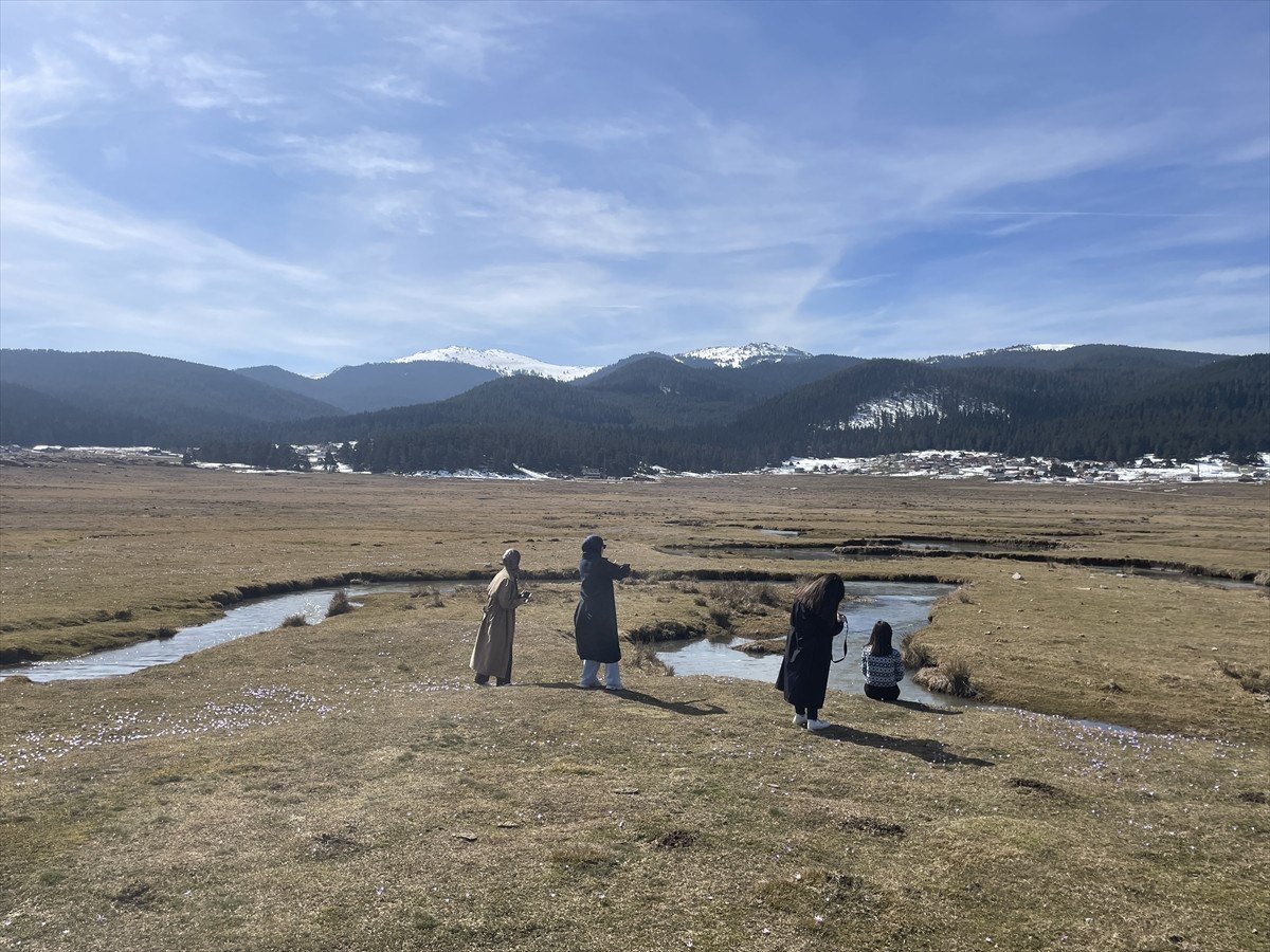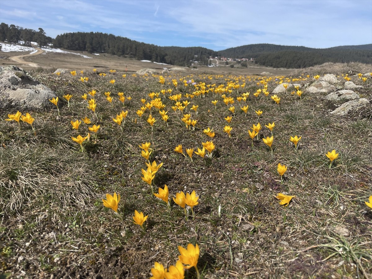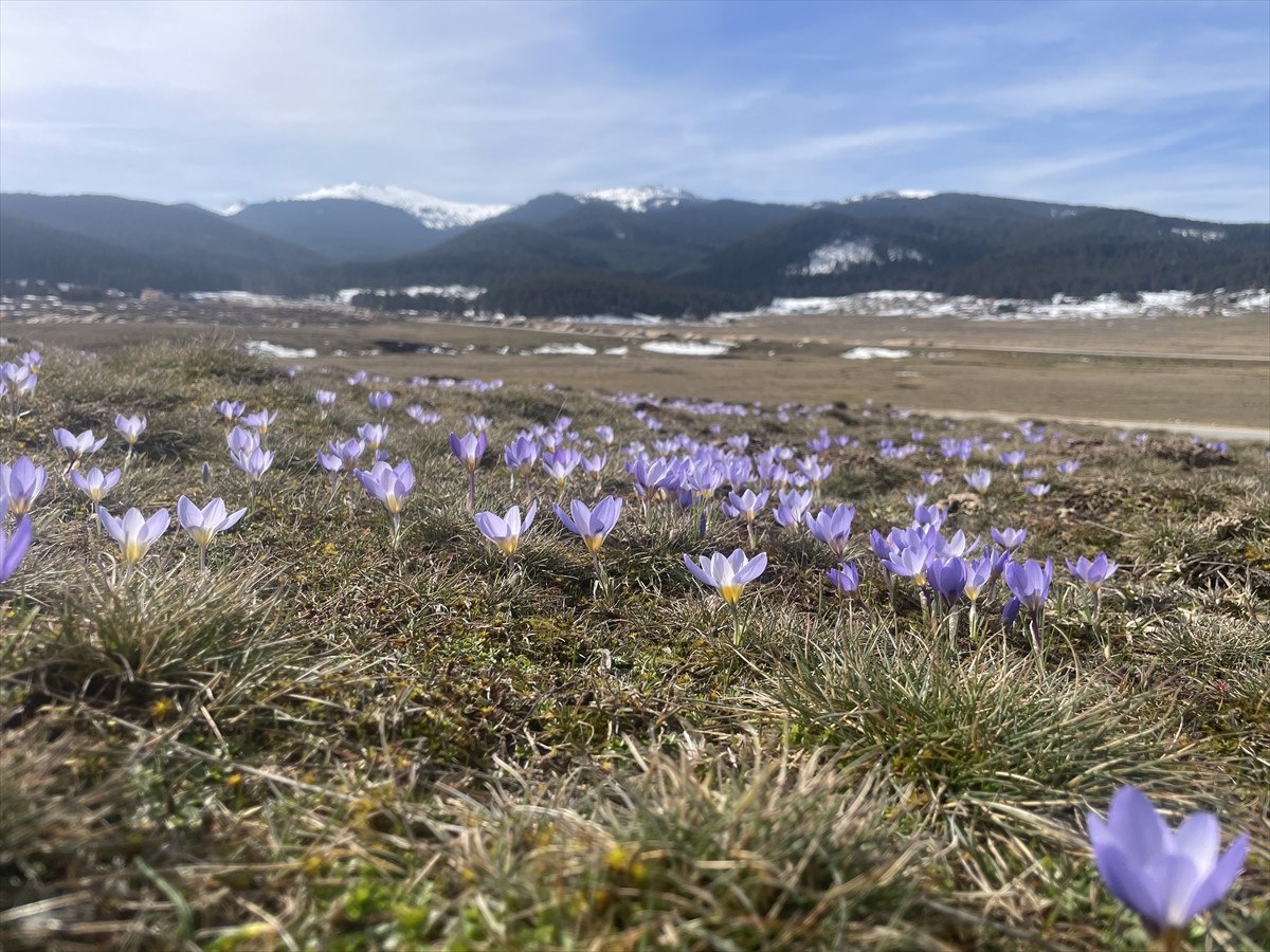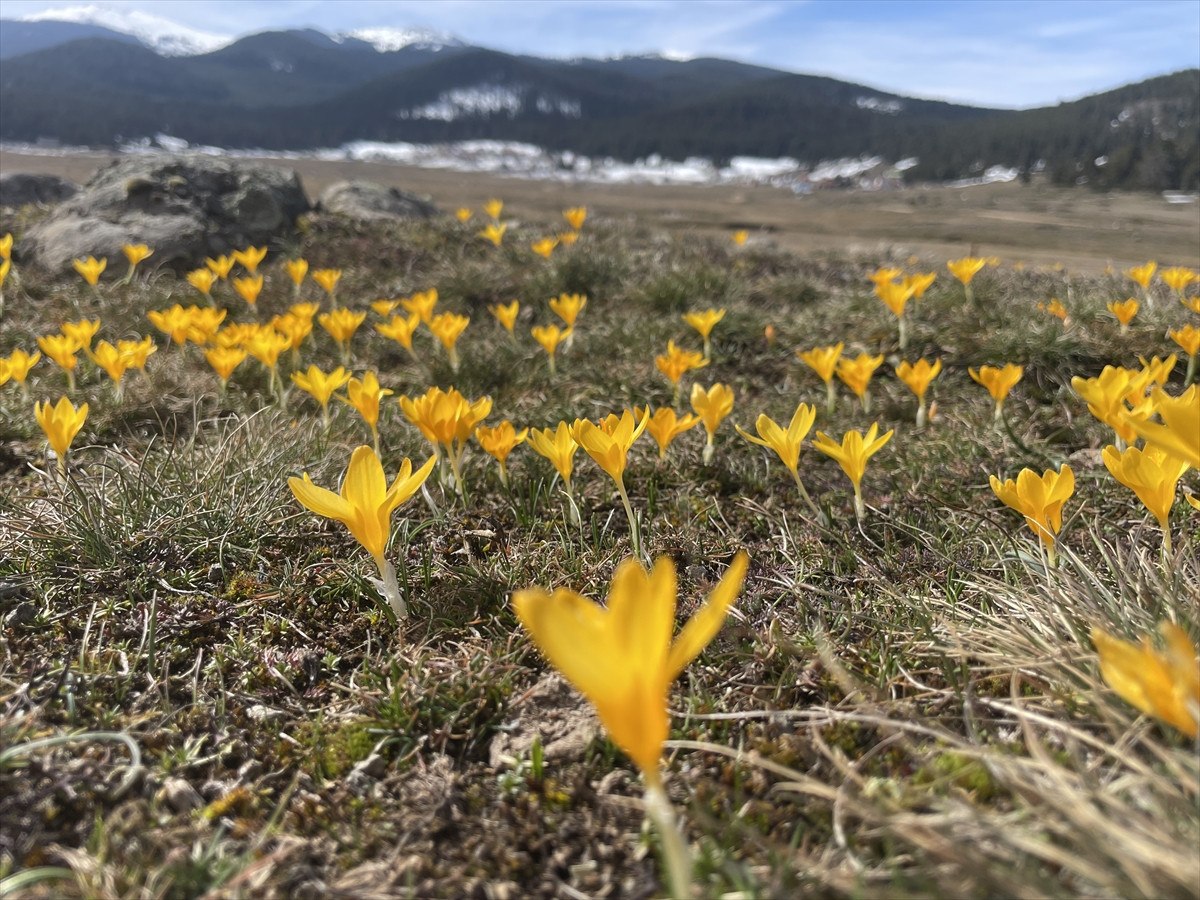 Isınan havayla birlikte yaylada mor ve sarı çiğdemler toprakla buluşarak göz alıcı bir manzara oluşturdu. Renk cümbüşüne dönüşen yayla, doğaseverleri kendine çekerken, ziyaretçiler bu büyüleyici atmosferi izleyerek ve fotoğraf karelerine yansıtarak keyifli anlar yaşıyor.