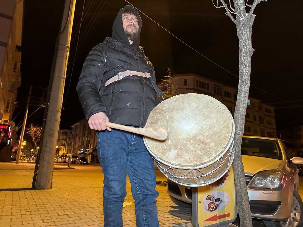 Vatandaşlar sahura, Osmanlı’dan kalan bir gelenek olan Ramazan davulcusu ve onun manileri ile uyanıyor.