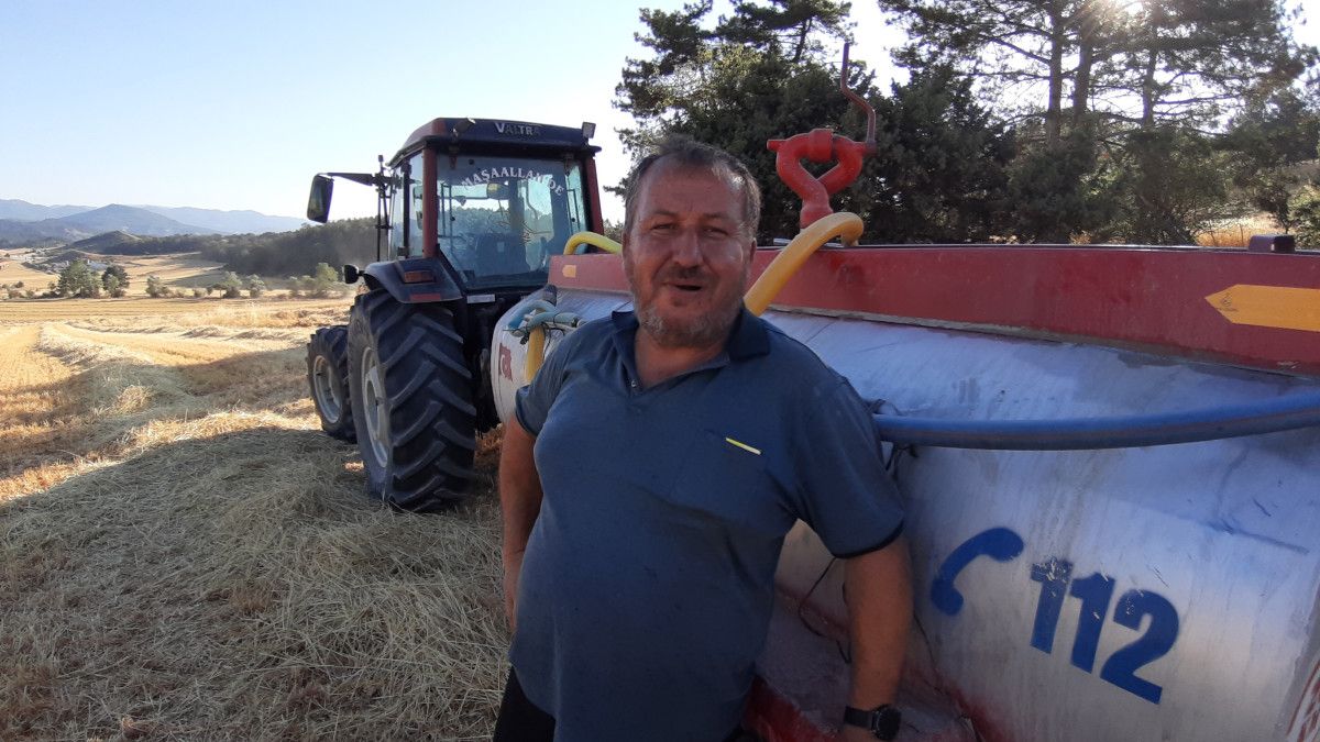 Biçerdöver nerede biçim yaparsa tankerin de orada konuşlandığını tabir eden Mehmet Tanrıkulu, “Yangın çıkmaması için tankerlerle biçerdöverlerin yanında tarlada bekliyoruz. Biçerdöver nereye giderse, tanker de oraya gidiyor.” sözlerine yer verdi.
