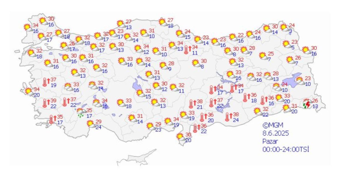 Meteoroloji Genel Müdürlüğü tarafından yapılan varsayımlara nazaran, batı ve Doğu Anadolu’nun güneydoğusunun kesimli, yer yer çok bulutlu, Muğla’nın iç, Denizli’nin güney ve Burdur’un batı kesitleri ile Hakkâri etraflarında lokal sağanak ve gök gürültülü sağanak, öbür yerlerin az bulutlu ve açık geçeceği kestirim ediliyor.