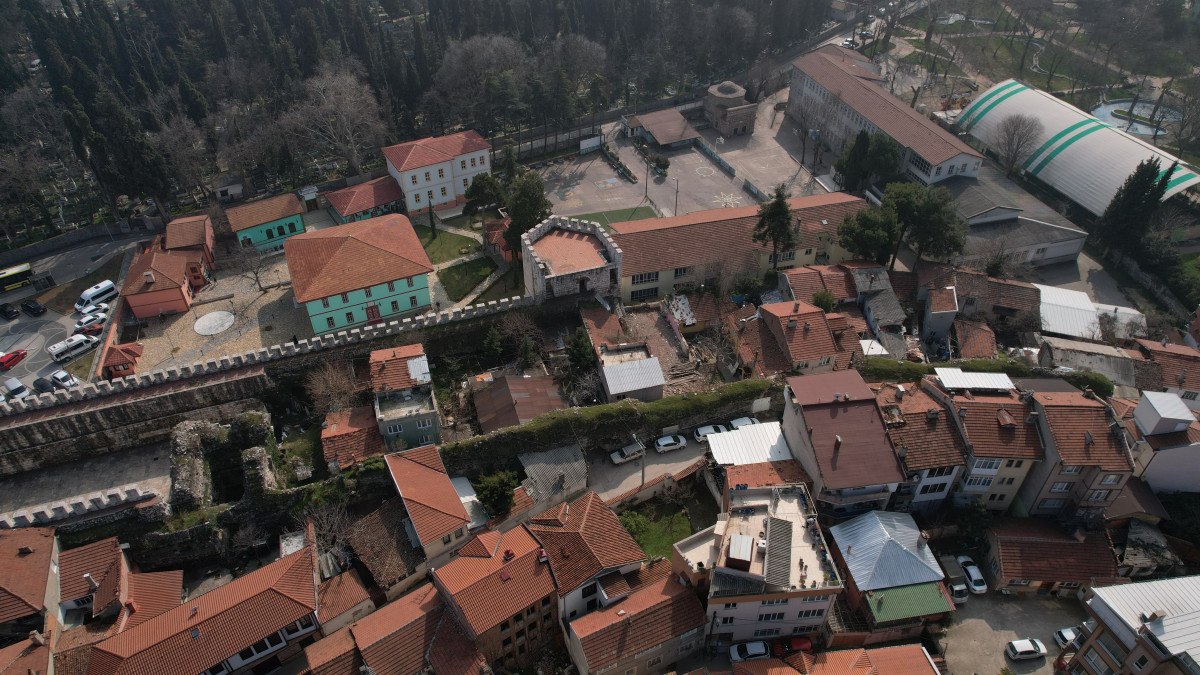 Surlardaki tarihi ayıp havadan dron ile görüntülendi.