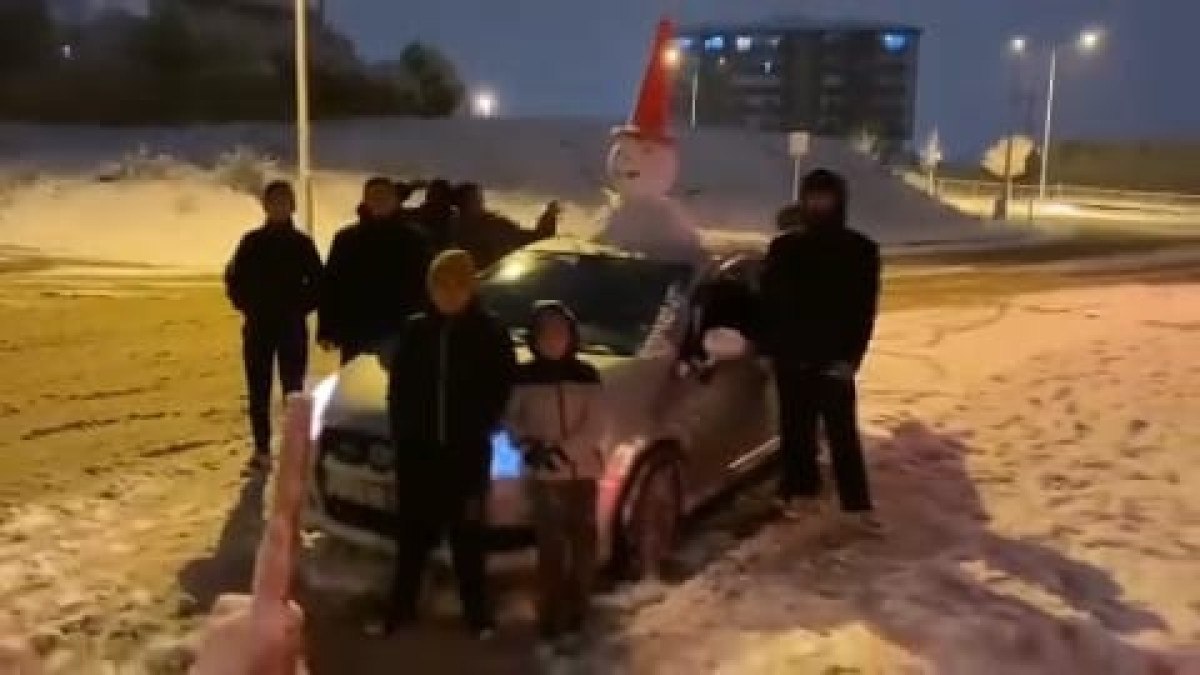 Karın keyfini çıkarmak isteyen bir vatandaş ise otomobilinin tavanına yaptığı kardan adamın başına huni koyup, şehir turu attı. Çocuklar kartopu oynarken, bazıları da aracın arkasında bağladığı kızakla kaydı.