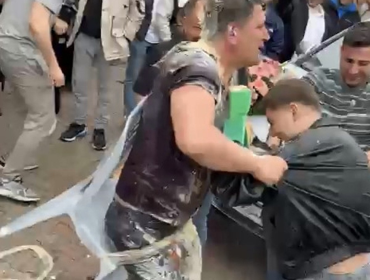 Arkadaşları, damadın başında yumurta kırıp, un, süt, ketçap ve mayonez döktü.
