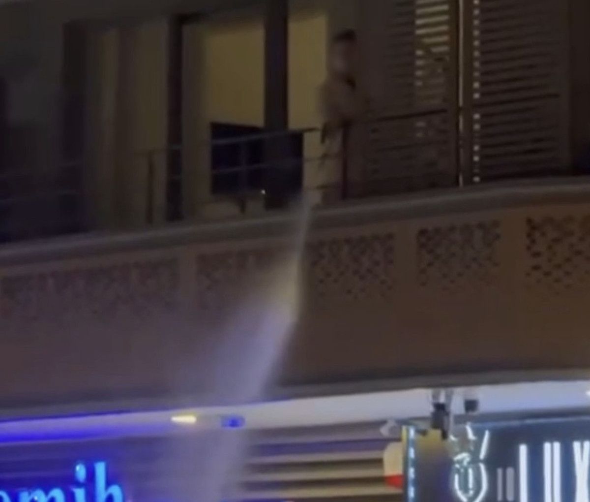 Duruma sonlanan konut sahipleri, araçların üzerine balkondan su sıktı.