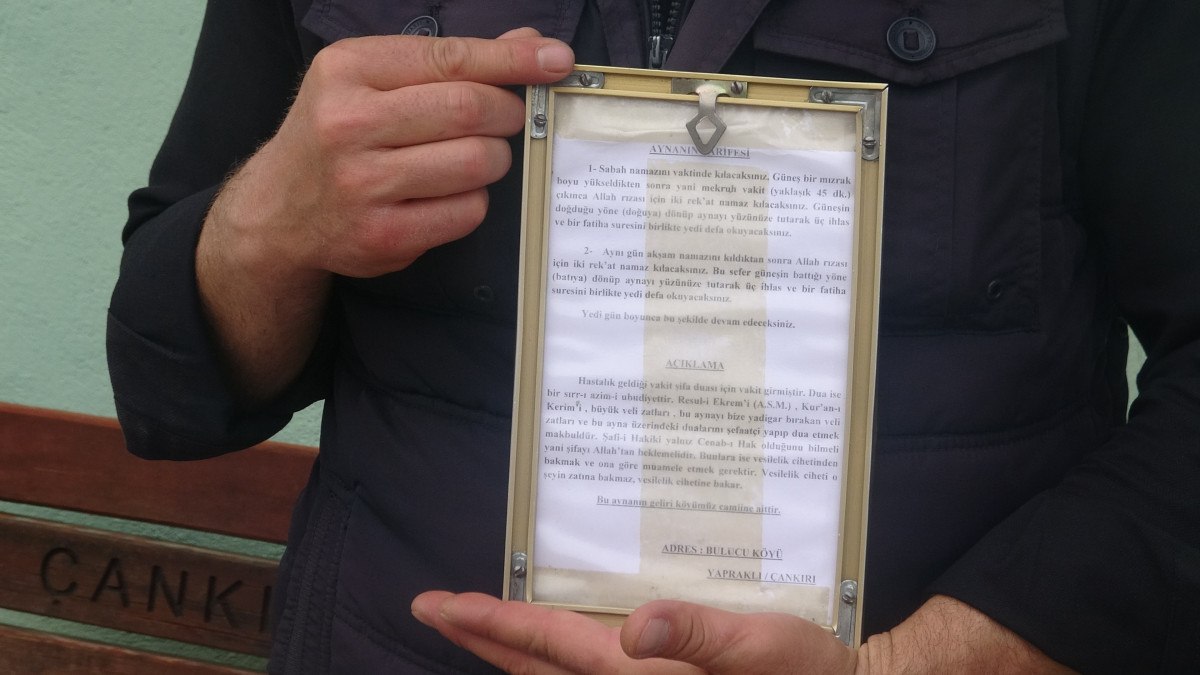 Yıllar önce köye gelen evliyalar tarafından bırakıldığı belirtilen aynanın arkasında yazılı olan yedi günlük bir ibadet süreci eksiksiz tamamlandığında, yüz felci geçiren hastalar sağlıklarına kavuştuğu düşünülüyor.