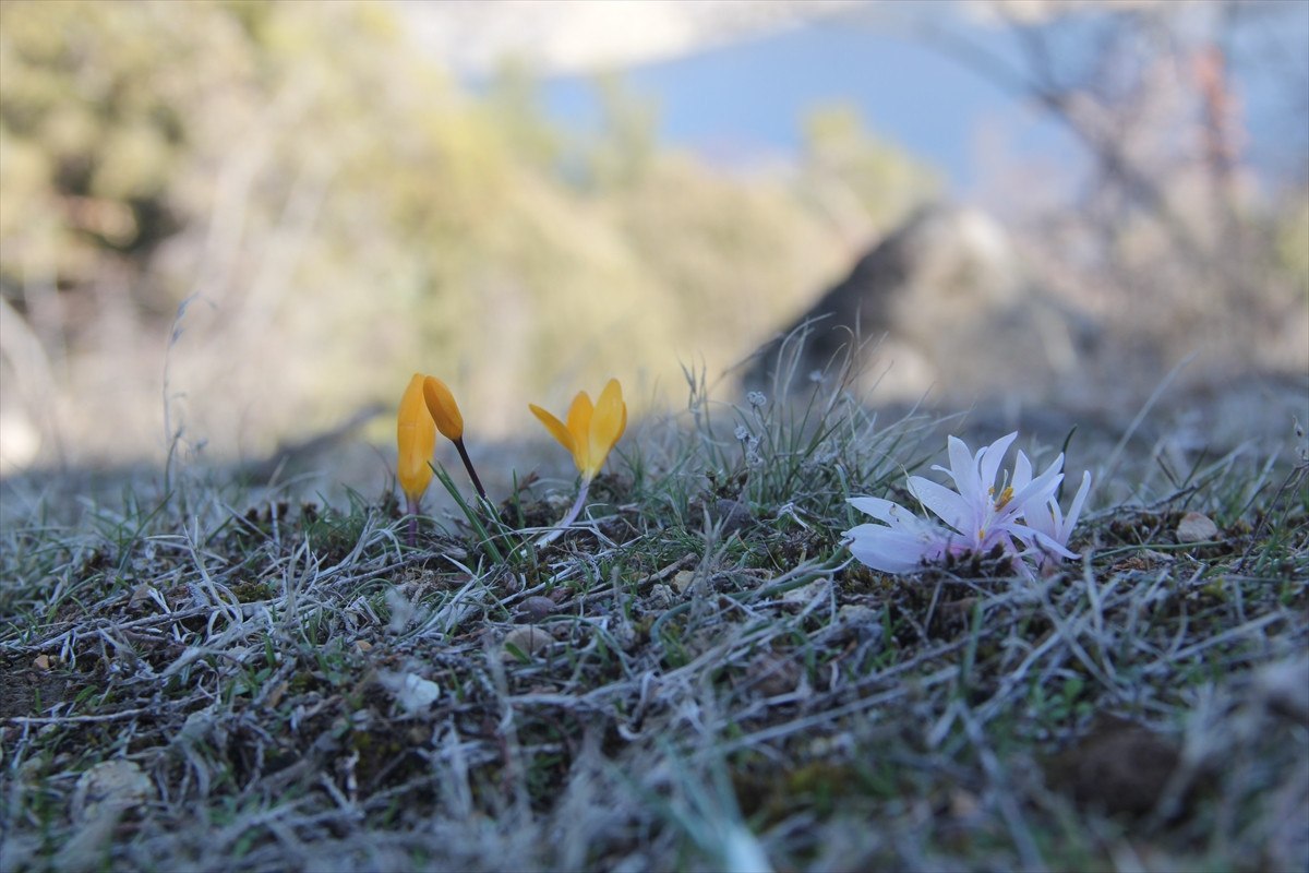 İlçede genellikle mart ayında açan çiğdemler, kurak geçen kış mevsiminde etkili olan güneş ışıkları nedeniyle gün yüzüne çıktı.