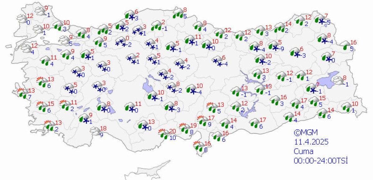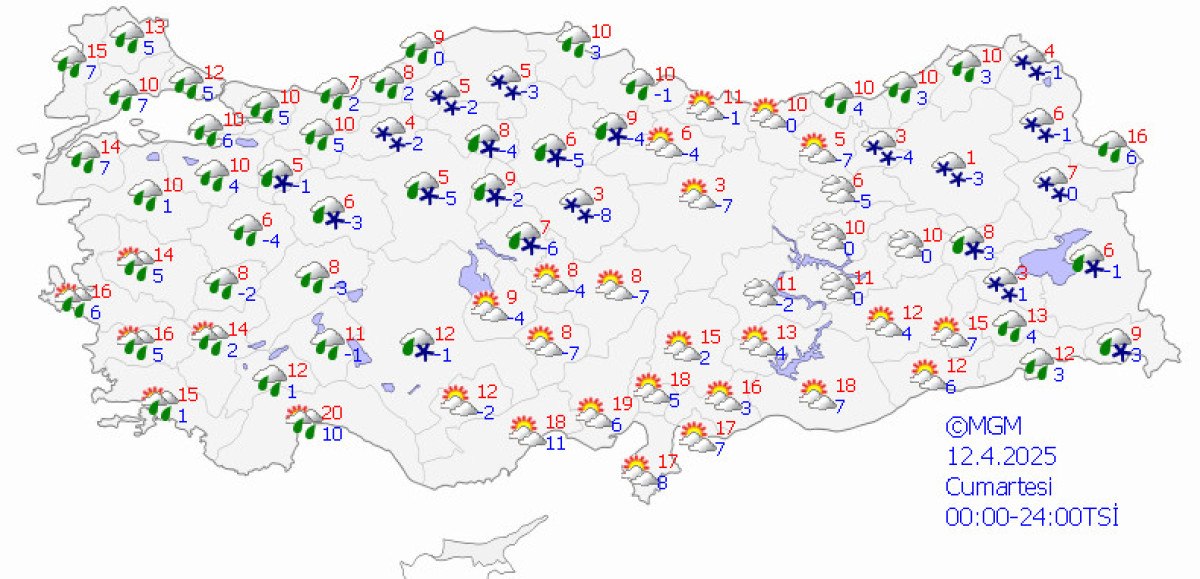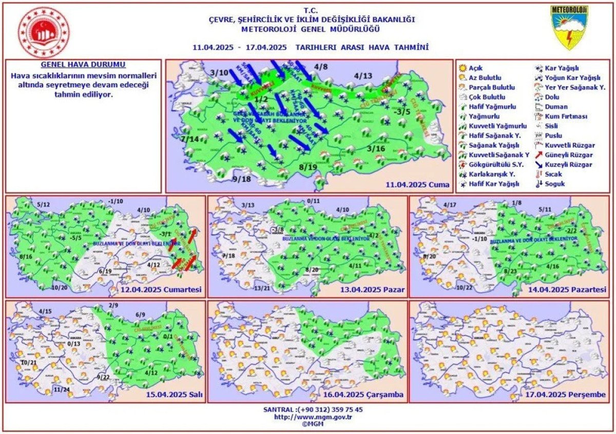 Meteoroloji Genel Müdürlüğü tarafından yapılan tahminlere göre: