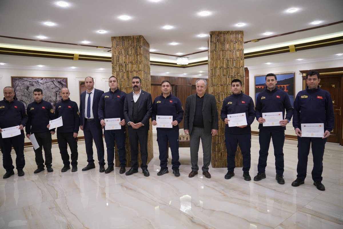 Diyarbakır Büyükşehir Belediyesi Meclis Üyesi ve Eş Başkanı Doğan Hatun, yangına müdahale eden Mestandoğan ve 7 arkadaşına çabalarından dolayı başarı belgesi takdim etti.