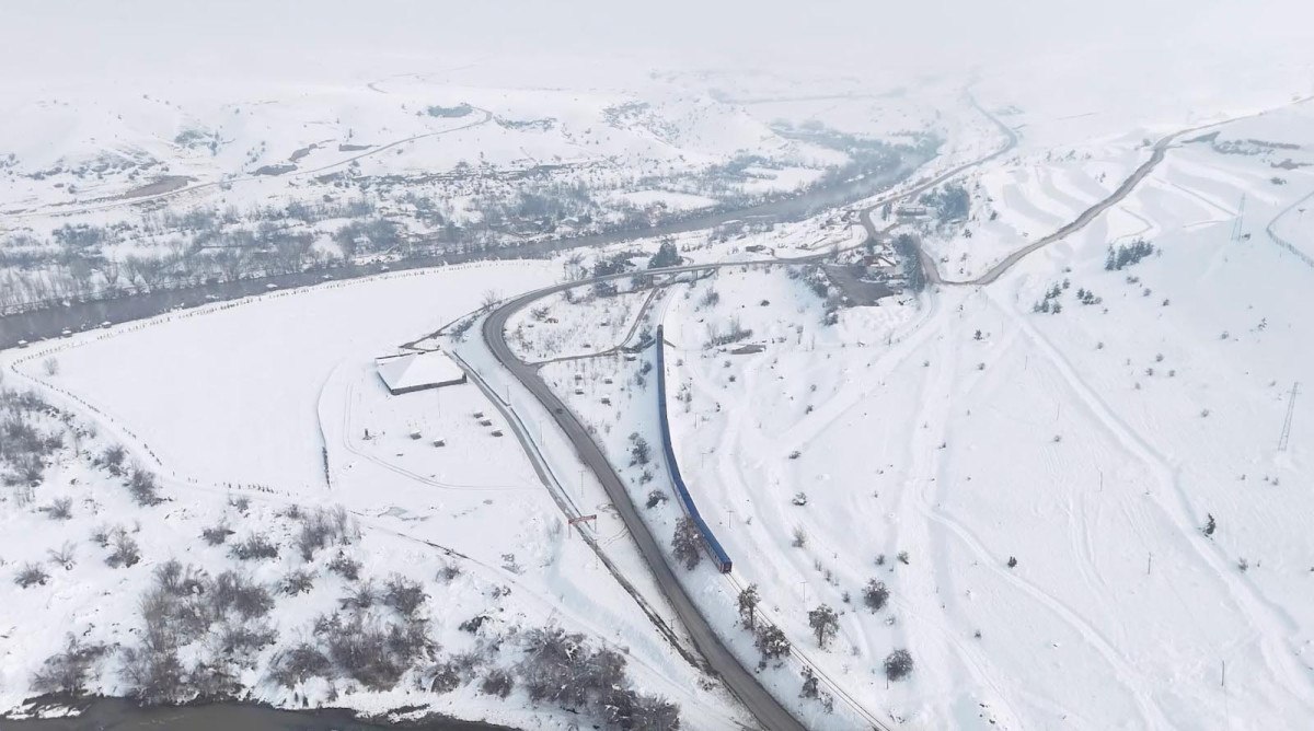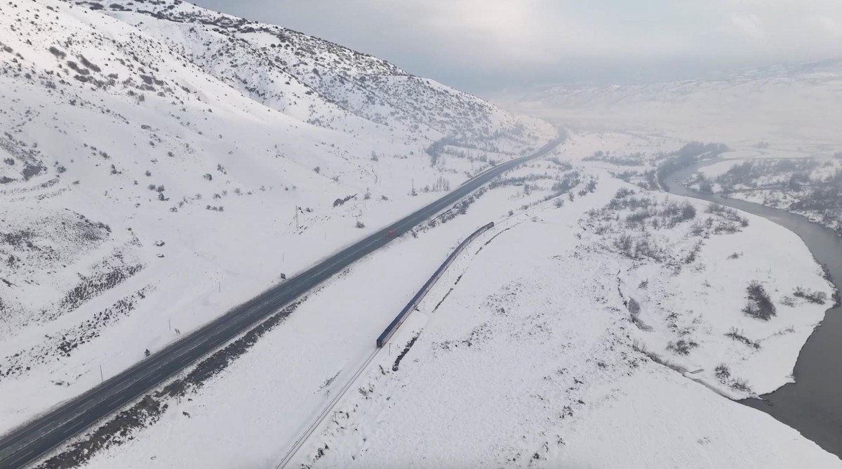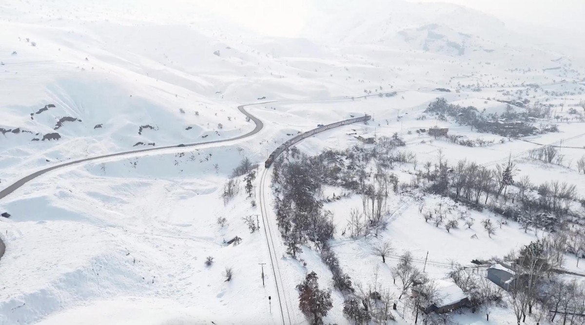 Kar kalınlığının 50 santimetreye ulaştığı güzergahta, trenin İliç istasyonundan Erzincan merkeze kadar olan seyahati kayıt altına alındı.
