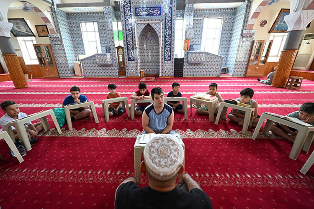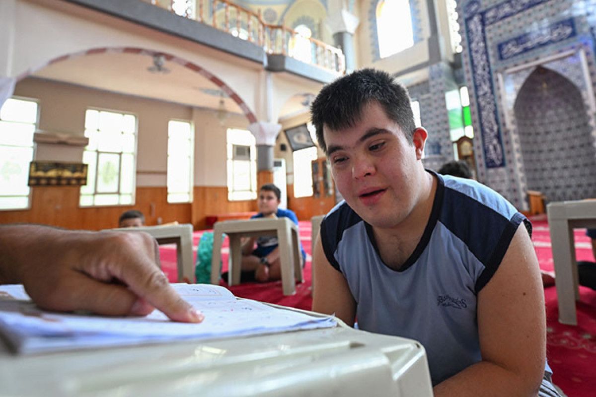 Gaziantep’te Kur’an kursu öğrencilerinden down sendromlu Enes Erinmez, sevinci ve azmiyle arkadaşlarına örnek oluyor.