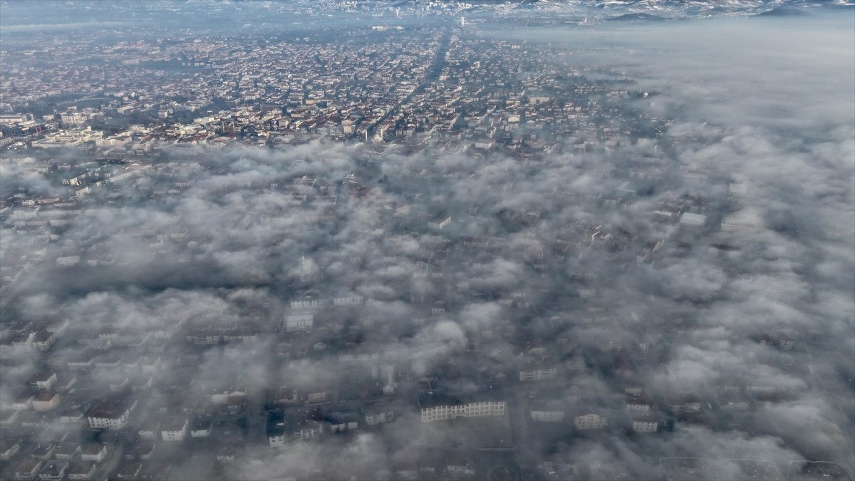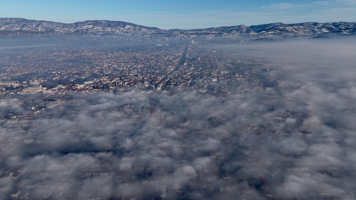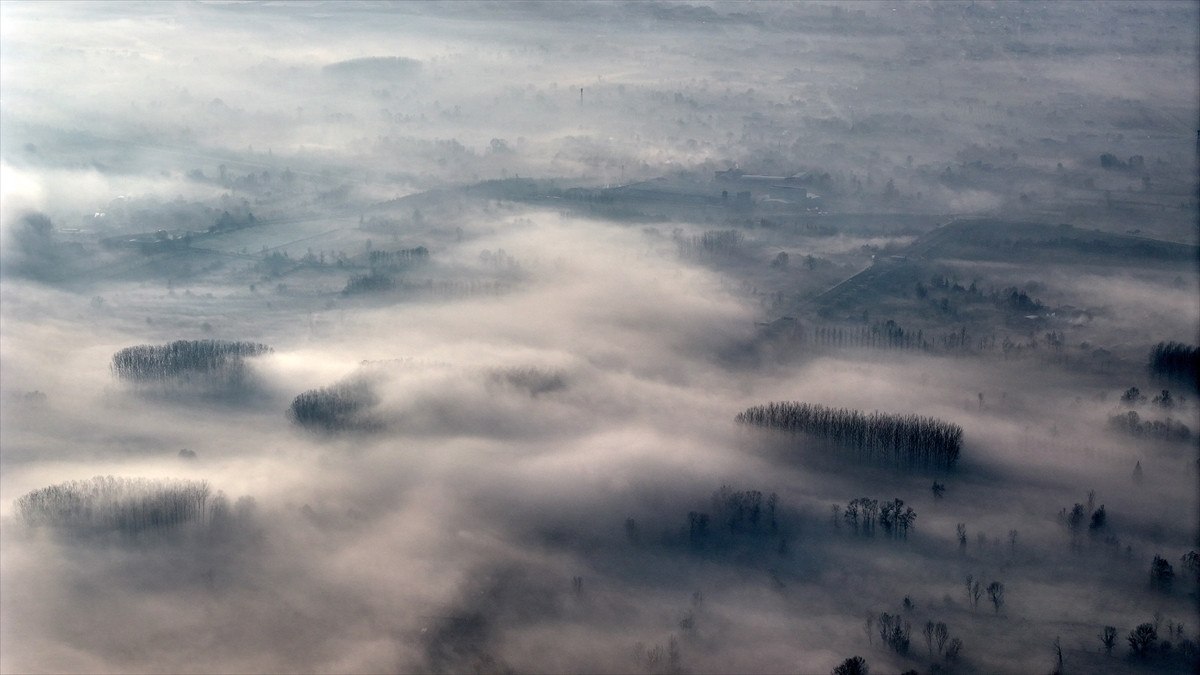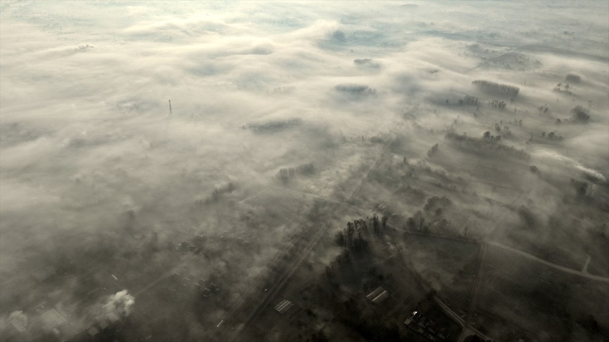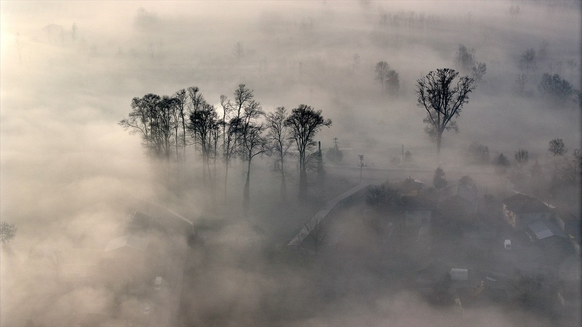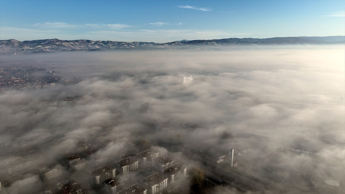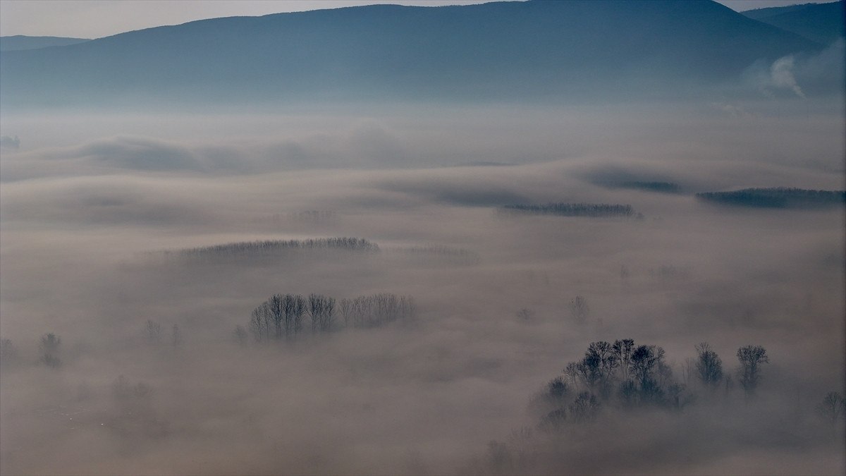 Dağların eteklerinde oluşan ve adeta sis denizini andıran manzara, havadan görüntülendi.