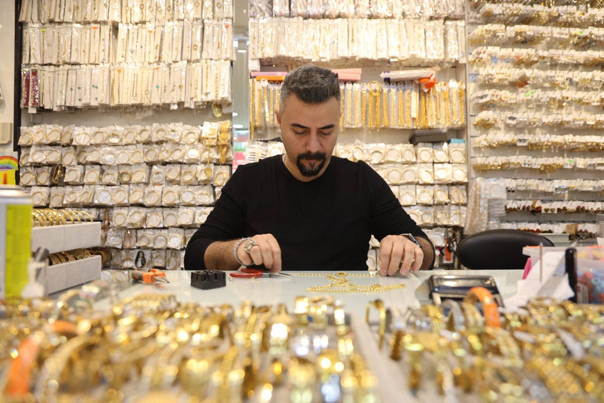 Elazığ’da dün düğün alışverişinden gelen bir grup, şehir merkezinde faaliyet gösteren takı tasarımı işletmesine gelerek kolye ve bileklik yaptırdı.