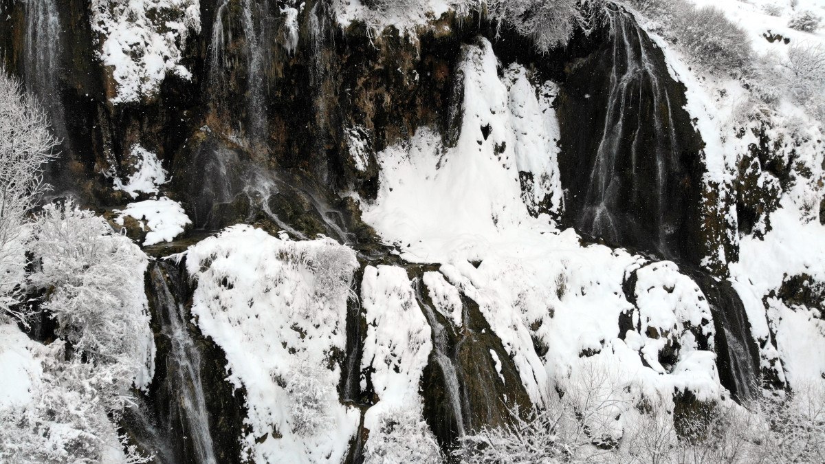 Çevre ve Şehircilik Bakanlığı Tabiat Varlıklarını Koruma Genel Müdürlüğü tarafından “Doğal Sit-Nitelikli Doğal Koruma Alanı” olarak tescil edilen şelale, son günlerde yaşanan yoğun kar yağışıyla beyaz gelinliğini giydi.