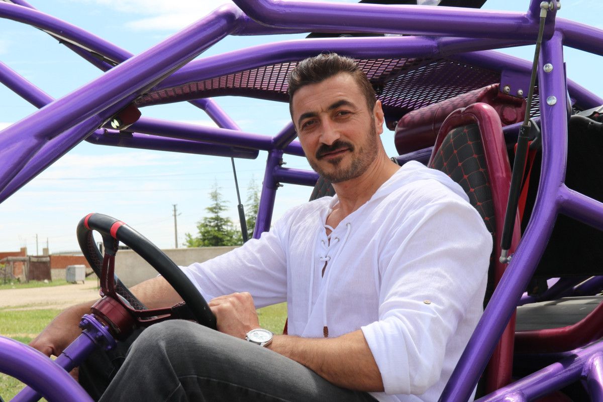 Bu aracı bir sinemadan esinlenerek yaptık. Daha evvel arkadaşlarım yapmaya çalışmış, lakin kâfi deneyimleri olmadığı için bana teklif ettiler, “Yapar mısın?” diye. Ben de boş vakitlerimde yaparım dedim. Toplamda 13 ayda bitti araç. Her kesimi tek tek elle şekillendirildi, düzeltildi, kaynaklandı. Oturakları bile kendimiz yaptık. Hiçbir şeye para vermedik, büsbütün el personelliği. 3 bin 500 motor kullanıldı. Güç konusunda bir ıstırabı yok.