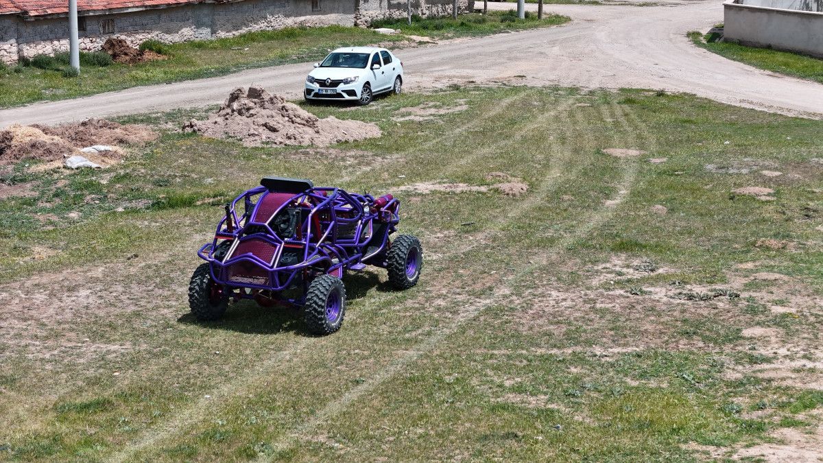 13 ay boyunca hiç durmadan çalışan Erdoğan, 3,5 litre hacimli minibüs motoruna sahip, arttan itişli 2 kişilik bir arazi aracı yaptı.