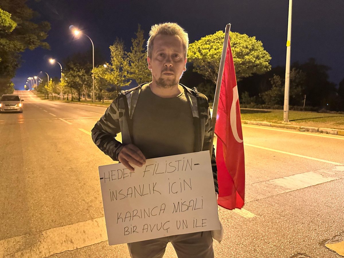 Eskişehir’den yola çıktı: Bir paket un ve Türk bayrağı ile Gazze’ye yürüyor