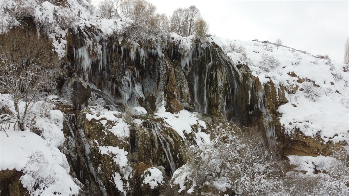 Kente 35 kilometre mesafedeki şelalede, hava sıcaklığının gece sıfırın altında 10 dereceye kadar düşmesiyle boyları 2 metreyi bulan buz sarkıtları oluştu.