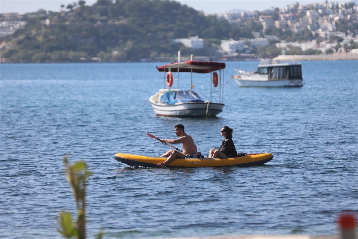 Ülke genelinde hava sıcaklıklarında yaşanan artış sürerken, Muğla’nın Bodrum ilçesinde de Mart ayında yazdan kalma günler yaşanıyor