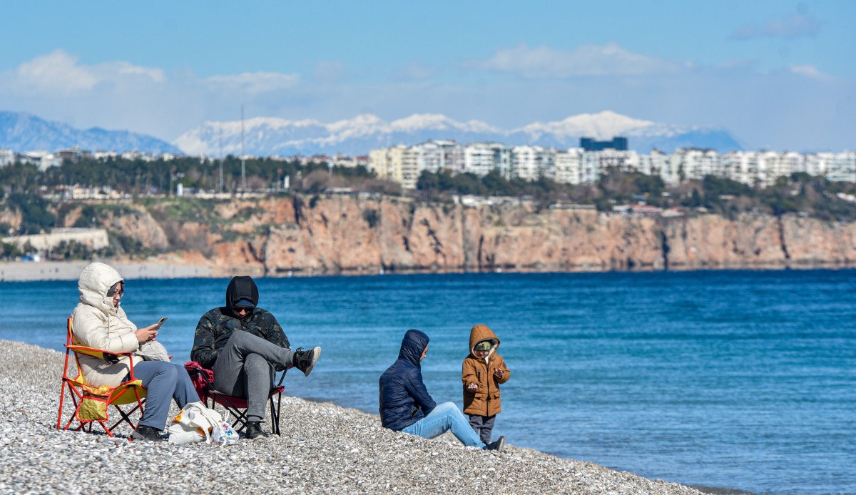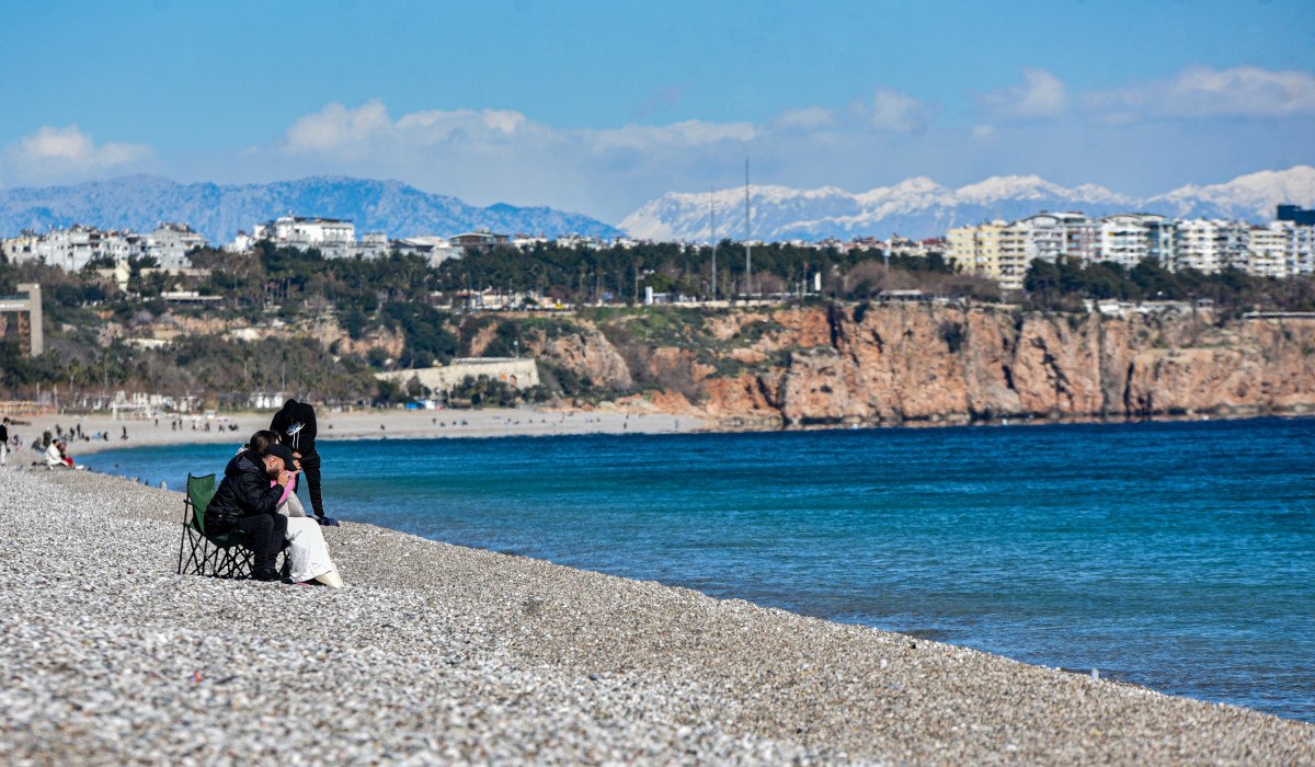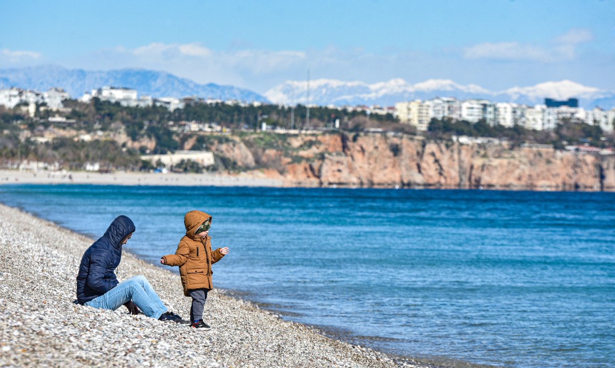 Rüzgarın soğuğu hissettirdiği Antalya’da güneşli havayı fırsat bilenler, dünyaca ünlü Konyaaltı Sahili’ne geldi.
