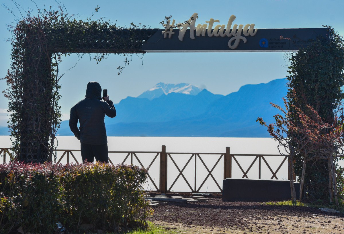 Antalya’da güneşli havayı fırsat bilerek Konyaaltı Sahili’ne gelenler, zirvesi karla kaplı Toros Dağları manzarası eşliğinde yürüyüp yapıp, vakit geçirdi.