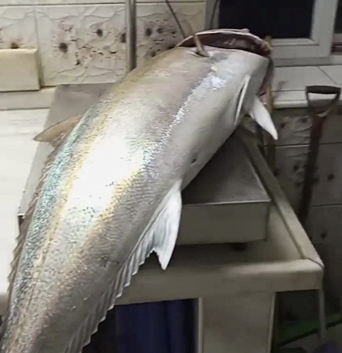 Yakaladığı balık karşısında şaşkınlık yaşayan Suğurtin’in tuttuğu 50 kilogramlık balık sosyal medyada da ilgi odağı oldu.