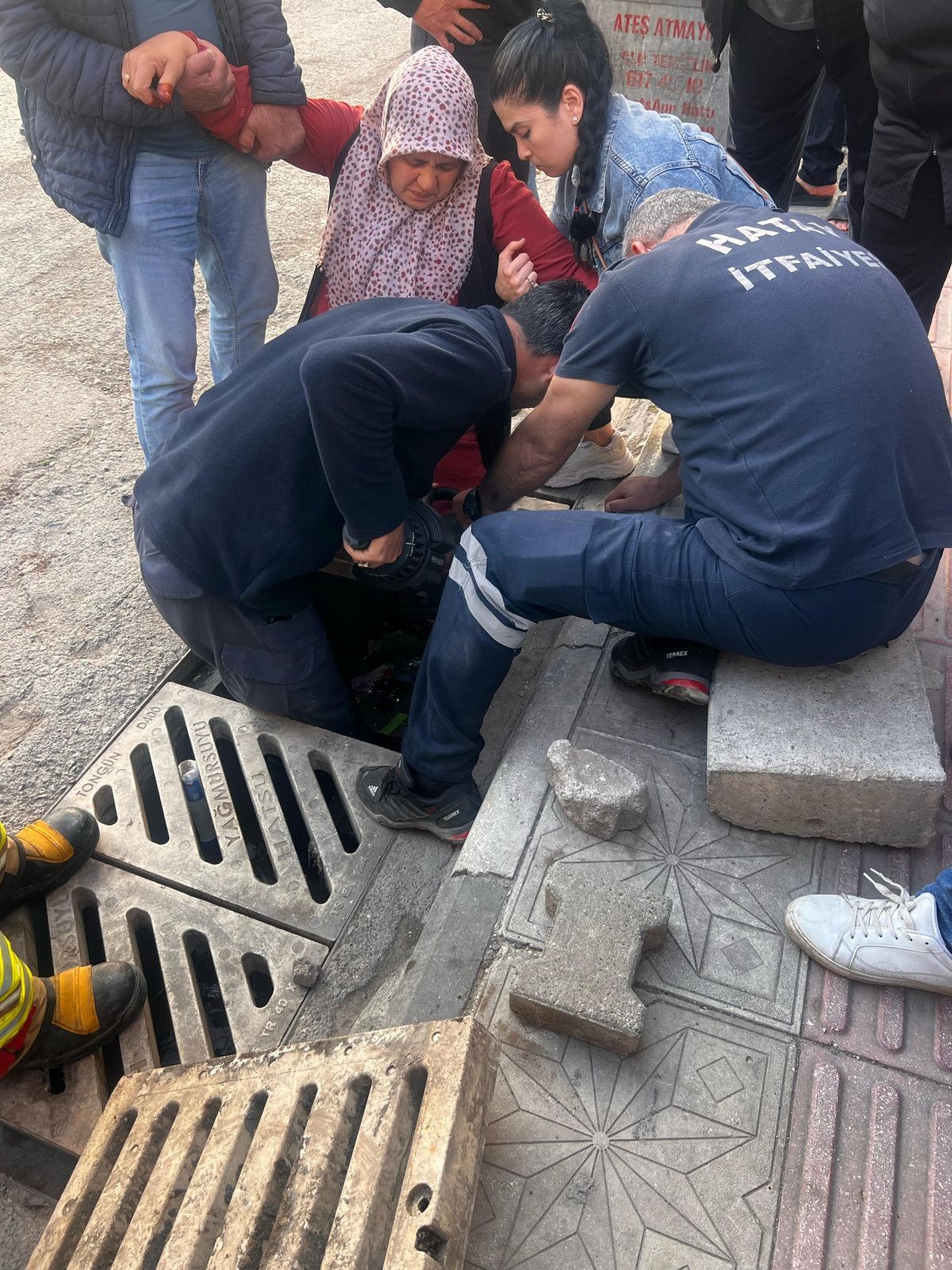 Hatay Büyükşehir Belediyesi itfaiye ekipleri kadının ayağını sıkıştığı yerden kısa sürede çıkarttı.