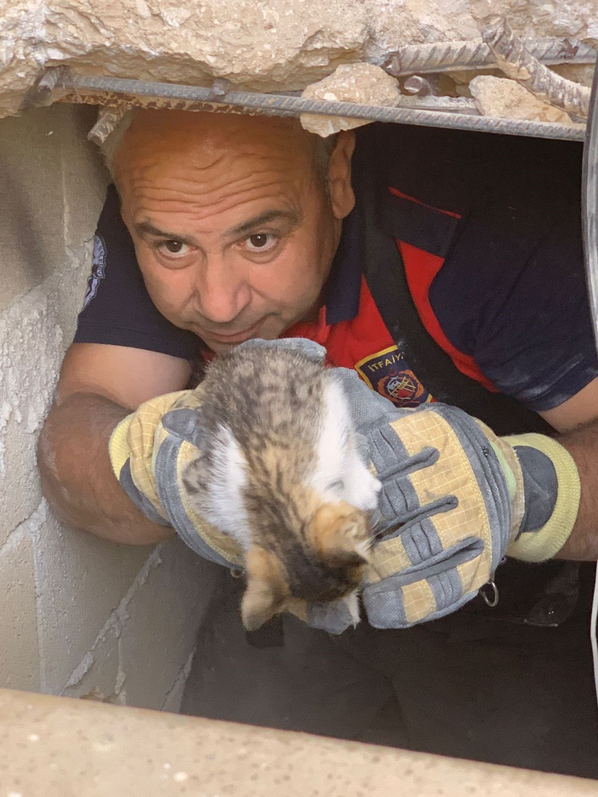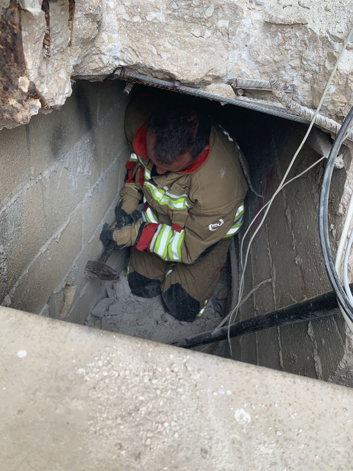Kısa müddette bölgeye gelen itfaiye grupları, duvarı kırarak hummalı çalışmayla kediyi kurtardılar.